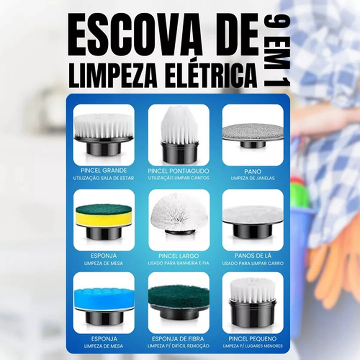 - Versatilidade 9 em 1: Encaixe uma das 9 escovas incluídas na embalagem e use os acessórios para limpar banheiros, cozinhas, pisos, paredes e muito mais.
