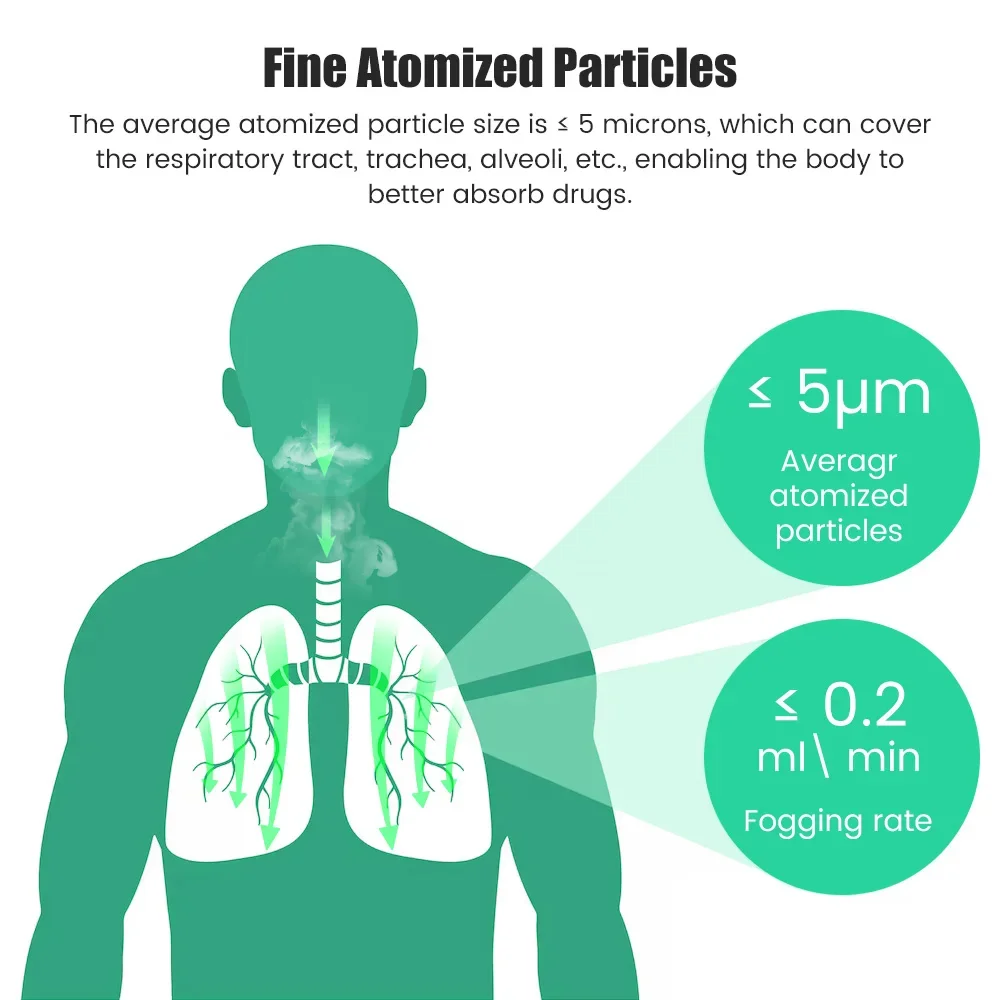 Este nebulizador de malha portátil é adequado para problemas respiratórios, e o kit umidificador de névoa fria é adequado para viagens ou uso diário em casa.